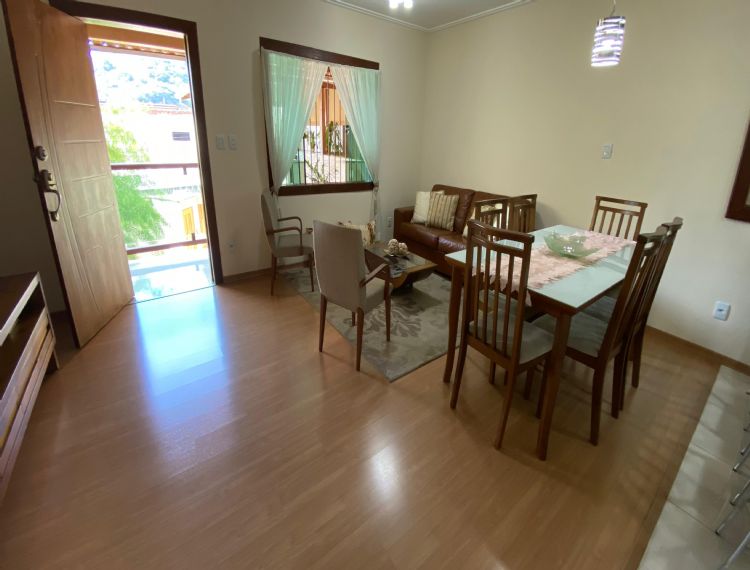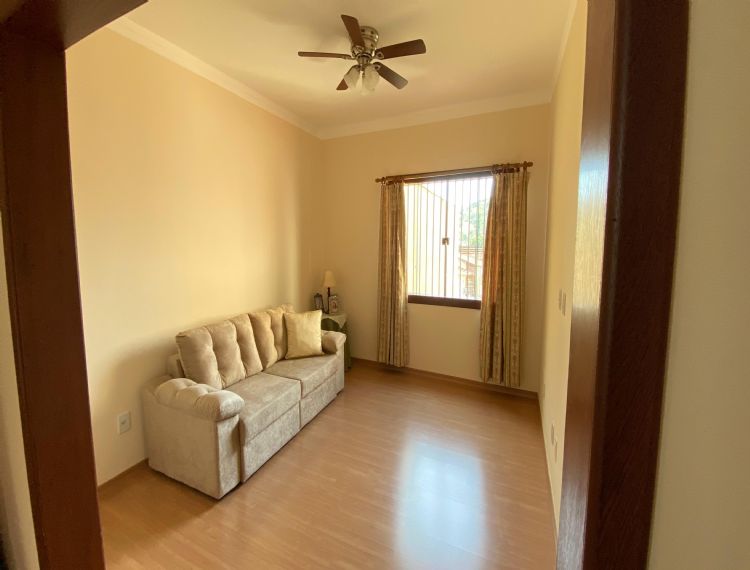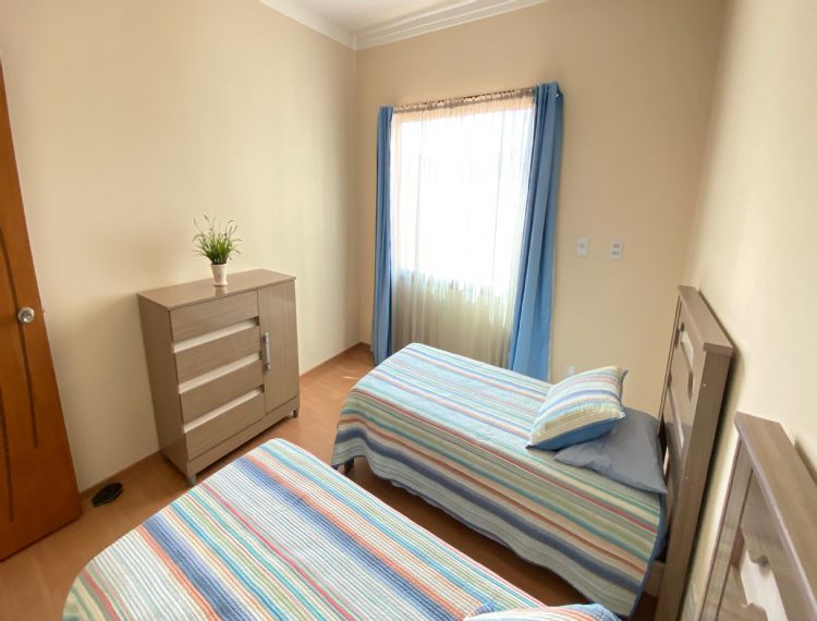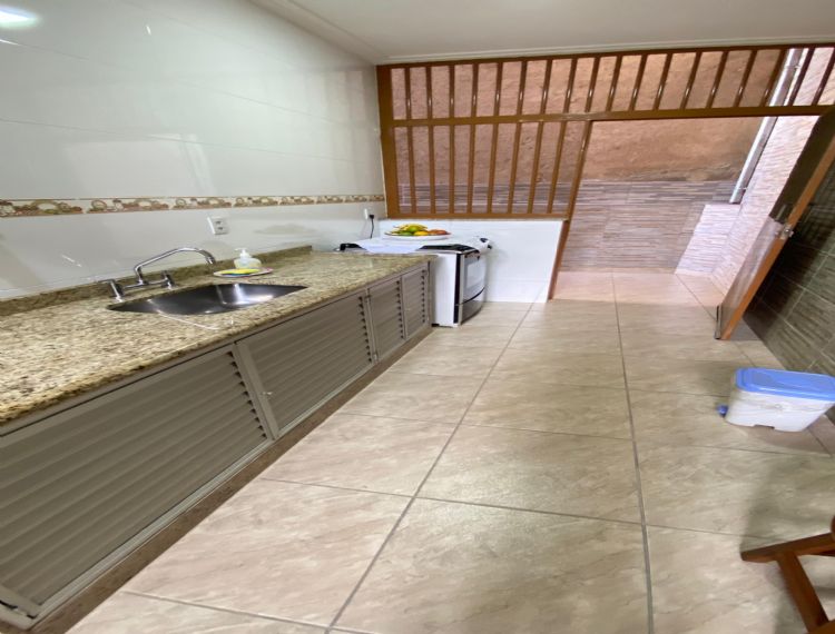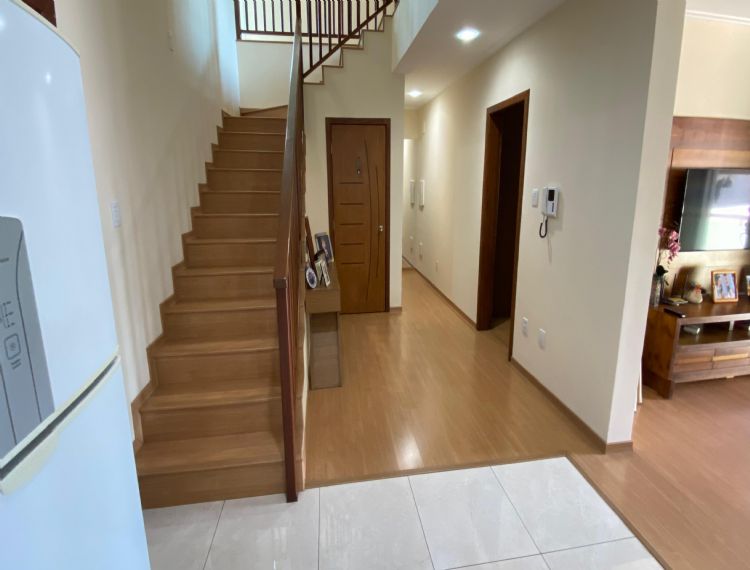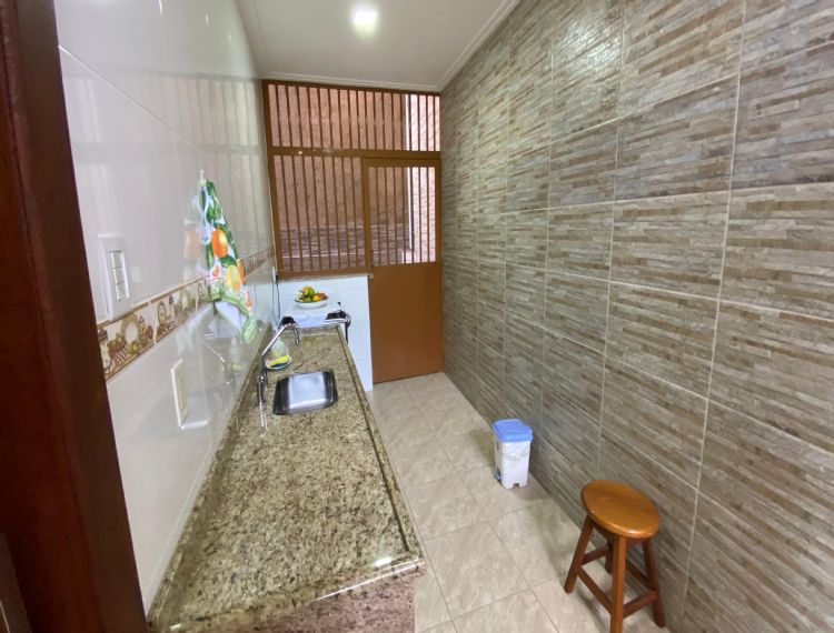 Conta com 4 dormitórios, 3 banheiros (1 lavabo), sala de estar, cozinha com armários, área de serviço e despensa.