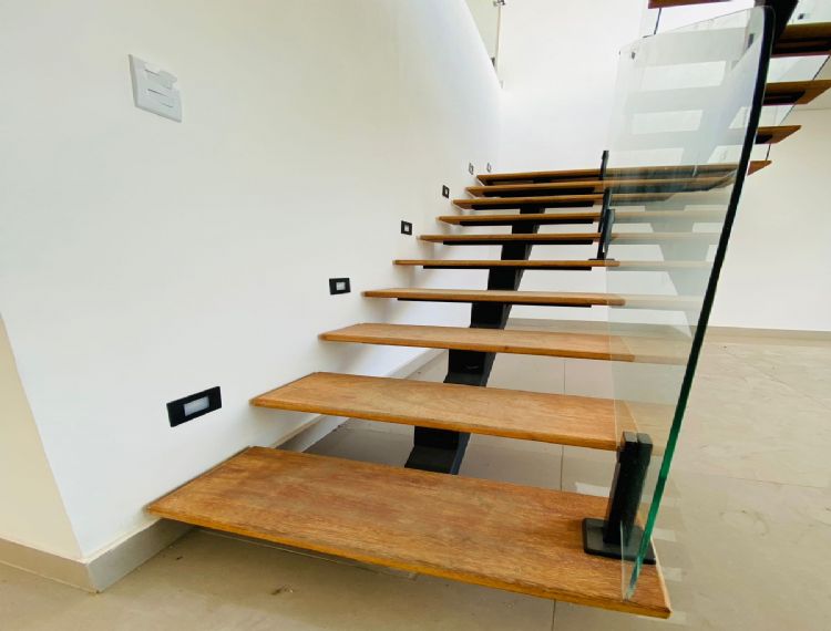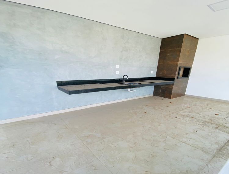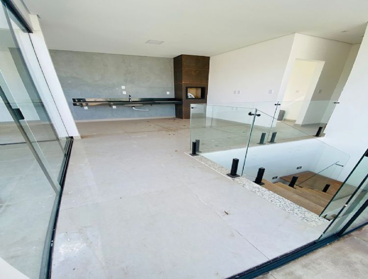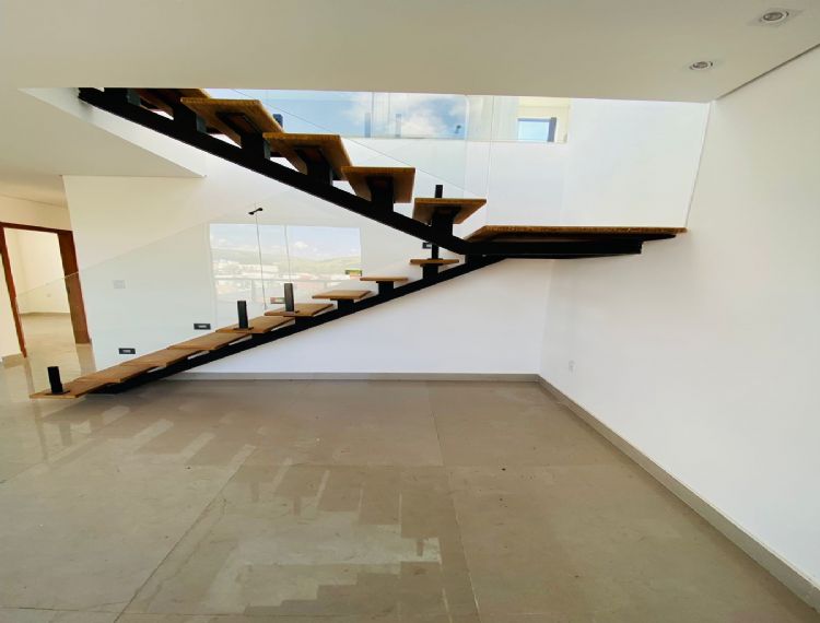 Fachada imponente em pele de vidro, piso em porcelanato, pias esculpidas, luzes LED embutidas e escada em madeira e blindex.