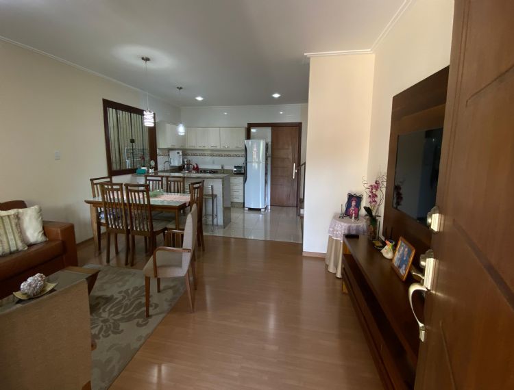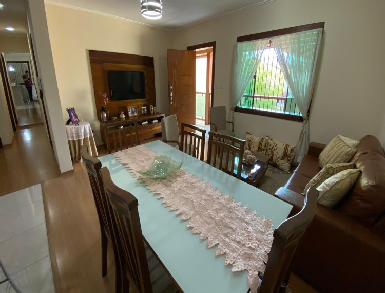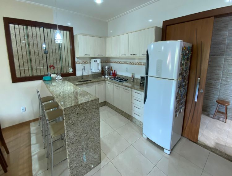 Conta com 4 dormitórios, 3 banheiros (1 lavabo), sala de estar, cozinha com armários, área de serviço e despensa.