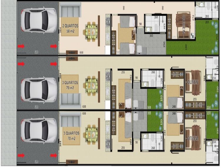 Casas geminadas LINEARES de 2 e 3 quartos sendo construídas no bairro Recanto Verde em Coronel Fabriciano.
