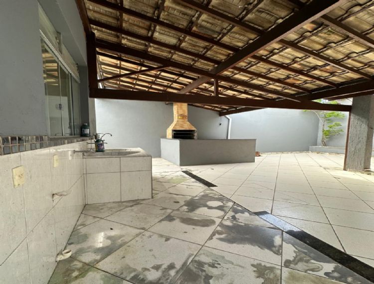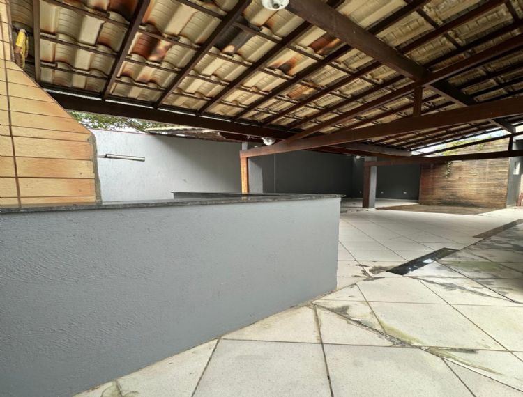 Área gourmet completa com: churrasqueira, bancada em granito, deck de madeira com ducha, área descoberta e lavabo